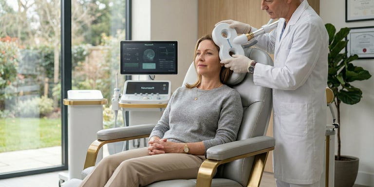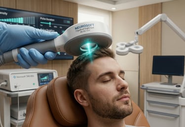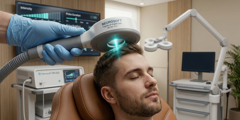 En Clínica Neuro Origen operamos exclusivamente con el equipo Neuro-MS/D de Neurosoft, líder mundial en neuromodulación. Esta plataforma de alta precisión cuenta con una bobina en forma de ocho para una estimulación cortical profunda, integrada a un sistema de enfriamiento líquido activo que garantiza la máxima eficacia clínica y el confort absoluto del paciente durante toda la sesión.