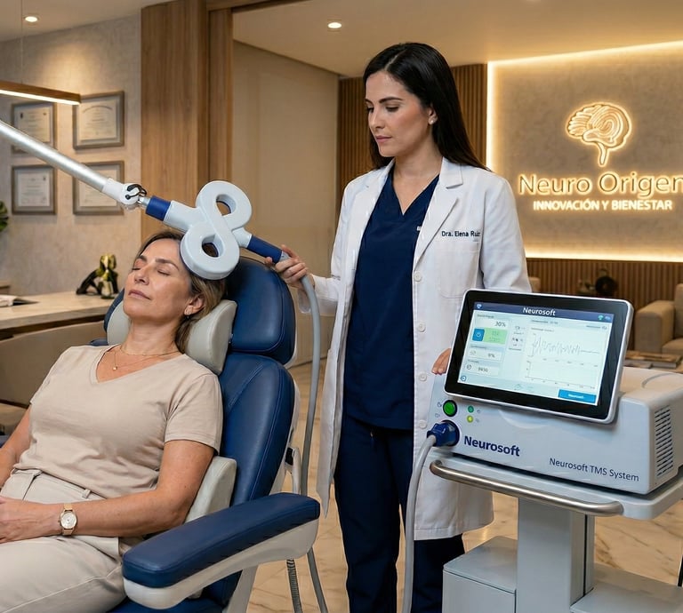 Neuromodulación focalizada de precisión. Un tratamiento médico no invasivo y basado en evidencia que emplea campos magnéticos para regular la actividad de las redes neuronales, respaldado por Clínica Neuro Origen y Fundación Amor.