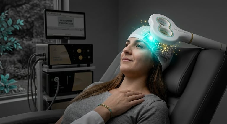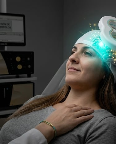 El Trastorno Depresivo Mayor es una condición neurobiológica compleja y debilitante que afecta profundamente el estado emocional, cognitivo y físico del paciente. A nivel cerebral, el TDM se correlaciona con una disminución significativa en la actividad metabólica y el flujo sanguíneo en áreas frontales, específicamente en la corteza prefrontal dorsolateral izquierda (CPFDL), la región encargada de la regulación del estado de ánimo. Aunque la primera línea de tratamiento suele ser farmacológica, hasta un 30% de los pacientes desarrollan "Depresión Resistente al Tratamiento", sufriendo efectos secundarios sistémicos sin lograr una verdadera remisión de los síntomas.