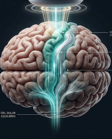 La EMT rompe el ciclo del dolor crónico actuando directamente sobre la "central de procesamiento". Aplicando protocolos específicos de alta frecuencia sobre la corteza motora primaria (M1), los pulsos magnéticos inducen cambios en la excitabilidad cortical y modulan las redes neuronales implicadas en la percepción y propagación del dolor. Esta intervención promueve la liberación de sustancias endógenas (como endorfinas) y restaura el equilibrio en las vías inhibitorias descendentes, logrando una reducción significativa y sostenida de la intensidad del dolor y mejorando la calidad de vida de forma no invasiva.